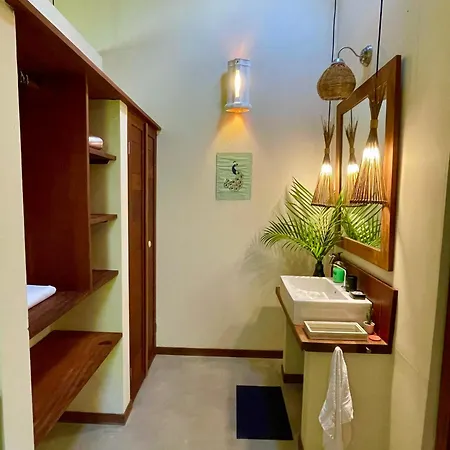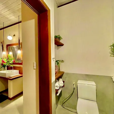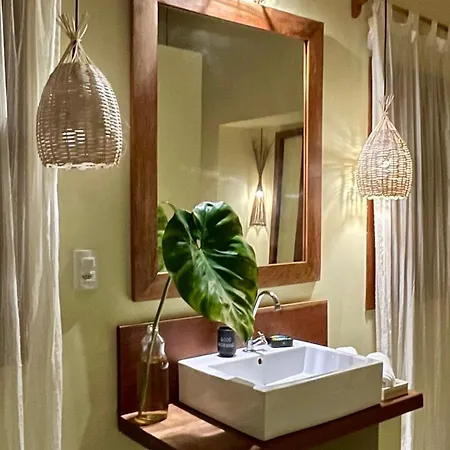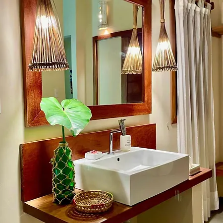 La Vila Nomade Pipa incluye un cuarto de baño con inodoro separado y ducha. Además, los huéspedes pueden disfrutar de la comodidad del secador de pelo y las toallas.